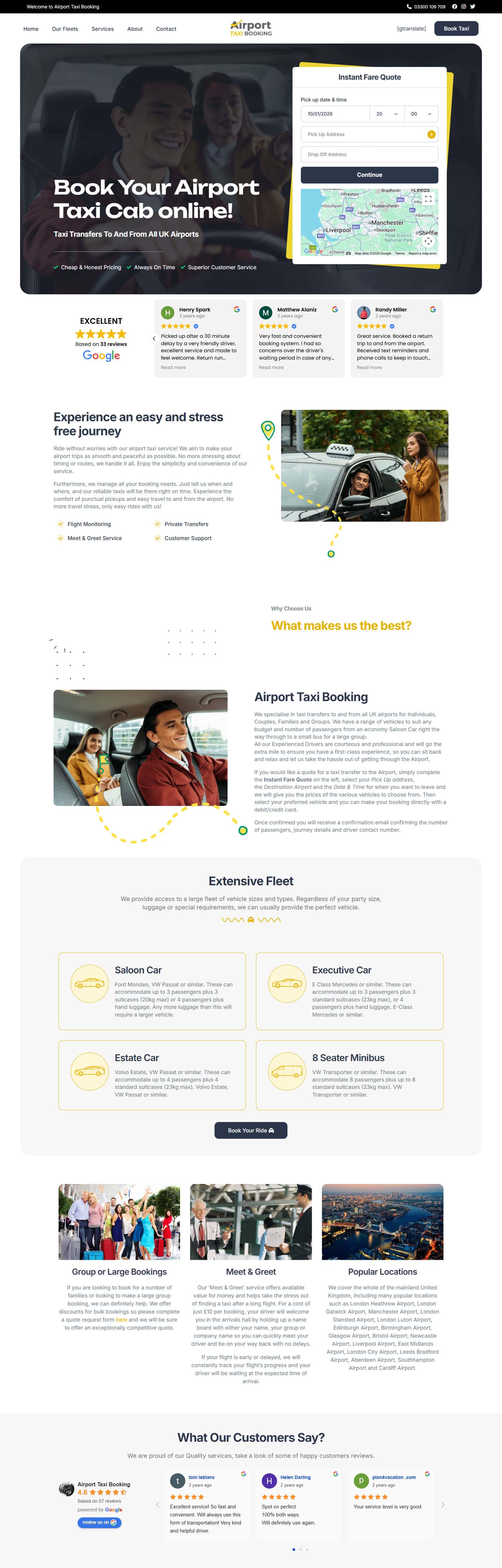 A taxi booking website, created using WordPress, features a custom-developed, powerful booking form that allows for easy taxi reservations and credit card payments.