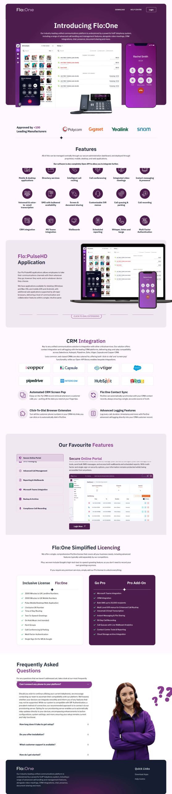 A WordPress website built using Elementor, designed to showcase Flo:One’s advanced VoIP telephony and communication features. Optimized for performance and SEO, it includes a sleek, user-friendly interface highlighting CRM integration, video meetings, and document sharing.