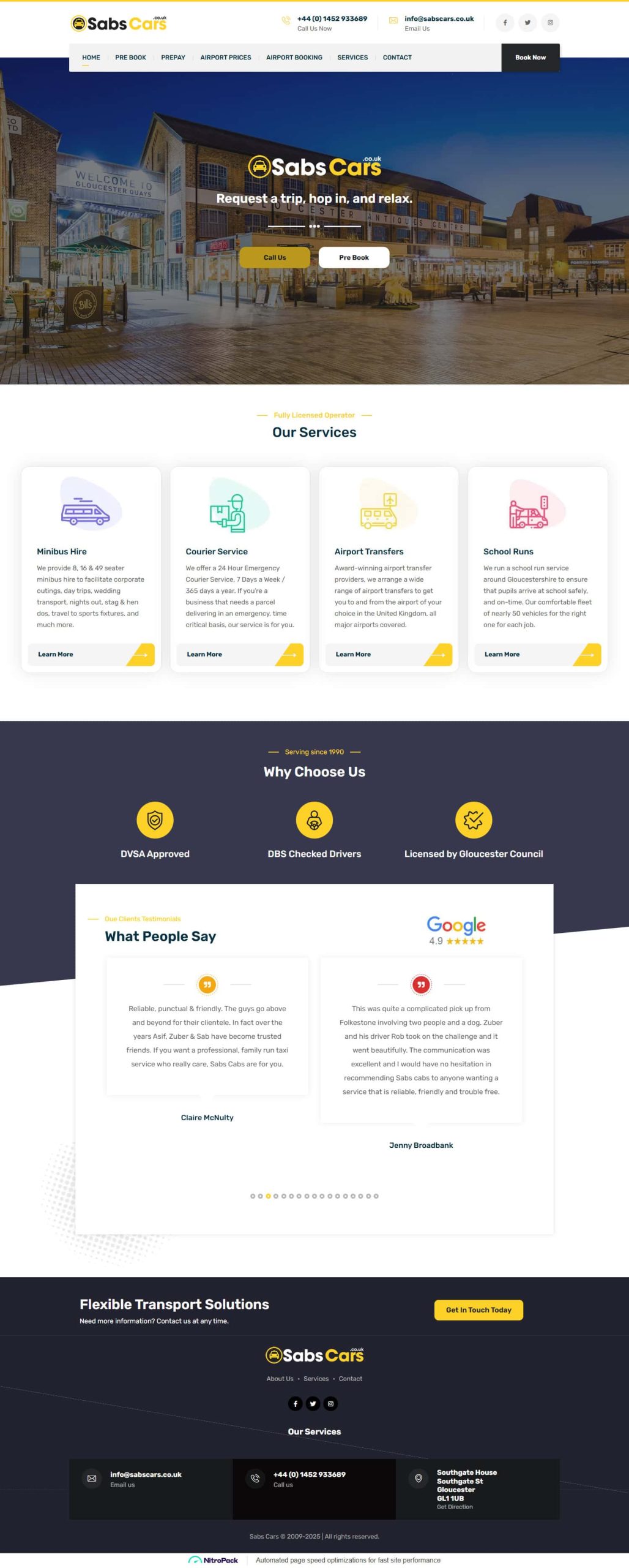 A professional taxi booking website built on WordPress, featuring an intuitive design for local, long-distance, and airport transfers. Optimized for SEO and user experience, making it easy for customers to book reliable private hire services in Gloucester.