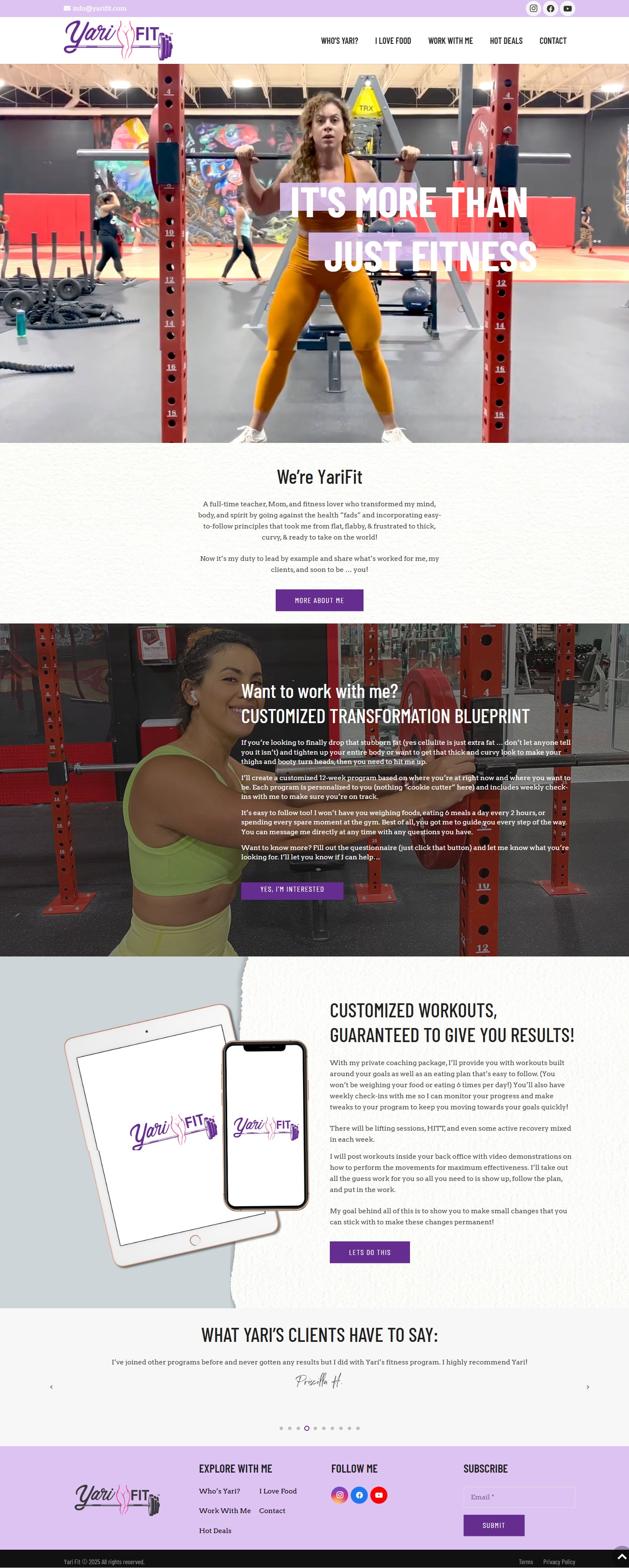A WordPress website built with Elementor, designed to showcase Yari’s fitness journey. Featuring a sleek, responsive layout with engaging content, blog integration, and SEO optimization to inspire and connect with users seeking real-life fitness motivation.